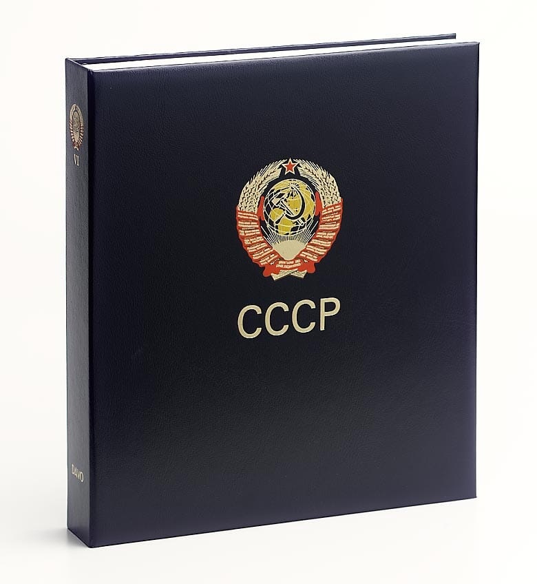 Das hier abgebildete luxe album Russland ist schön ausgeführt in einem blauen (gepolsterten) kunst lederein binder, der mit das wappen der Russland und mit der inschrift von CCCP.