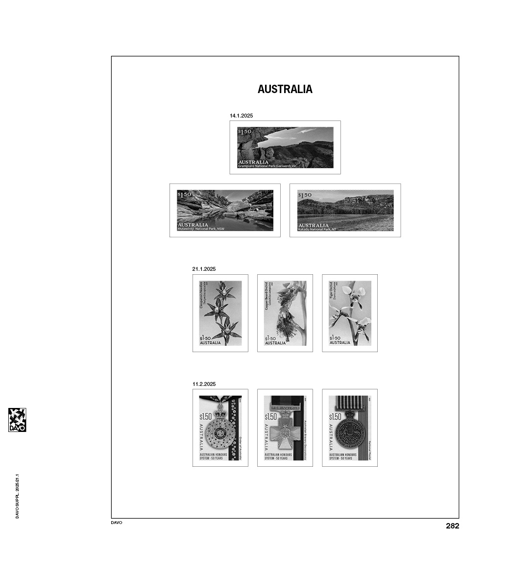 Jedes jahr erscheint die nachtrag Australien, das blätter aus extra schwerem papier (170 gr.) mit weichmacherfreien klemmstreifen enthält.