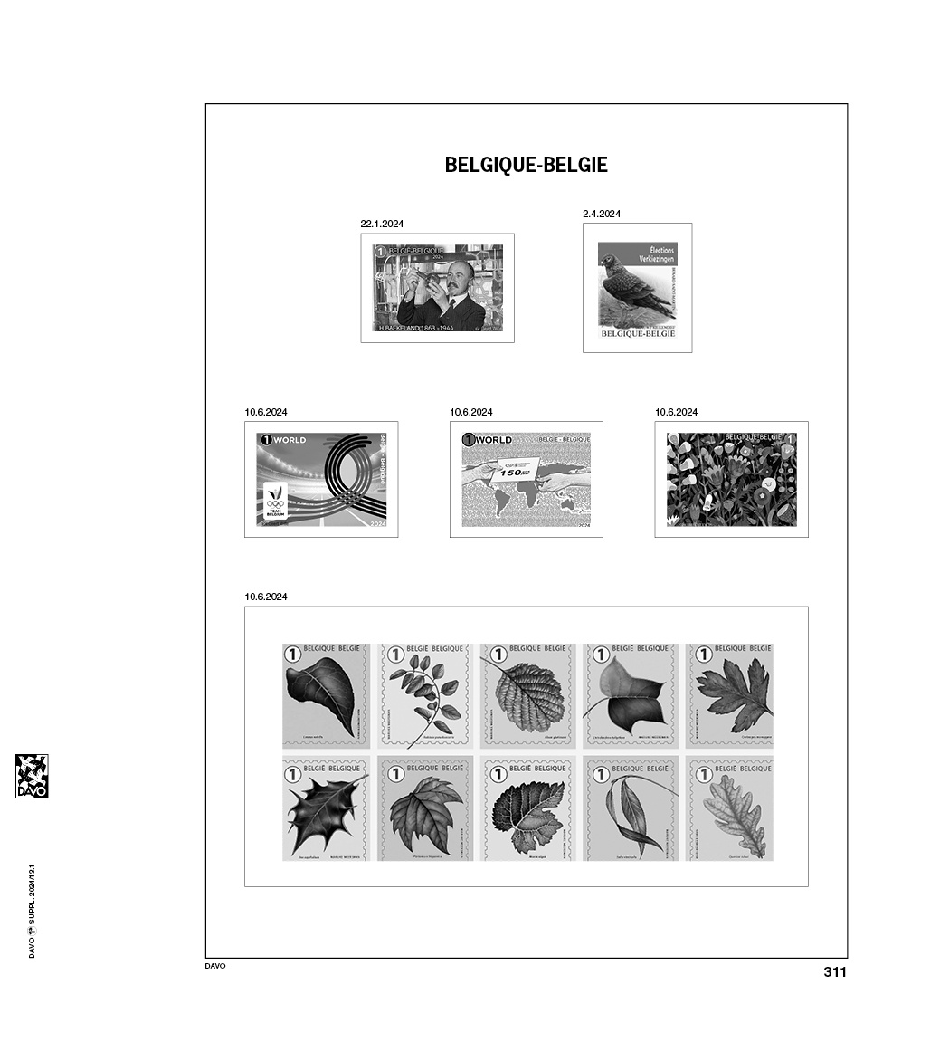 Die Nachträge mit Vordruckblättern von Davo, vom Typ DeLuxe, sind aus besonders stabilem, holzfreiem und alterungsbeständigem Karton mit einem Gewicht von 170 gr/m2 hergestellt. Diese hochwertigen Blätter sind in der Farbe Weiß ausgeführt und mit säure- und weichmacherfreien schützen Ihre Briefmarken, Briefmarkenhefte, Kleinbogen usw. optimal vor äußeren Einflüssen, ohne die Sicht auf Ihre Sammlung zu beeinträchtigen.