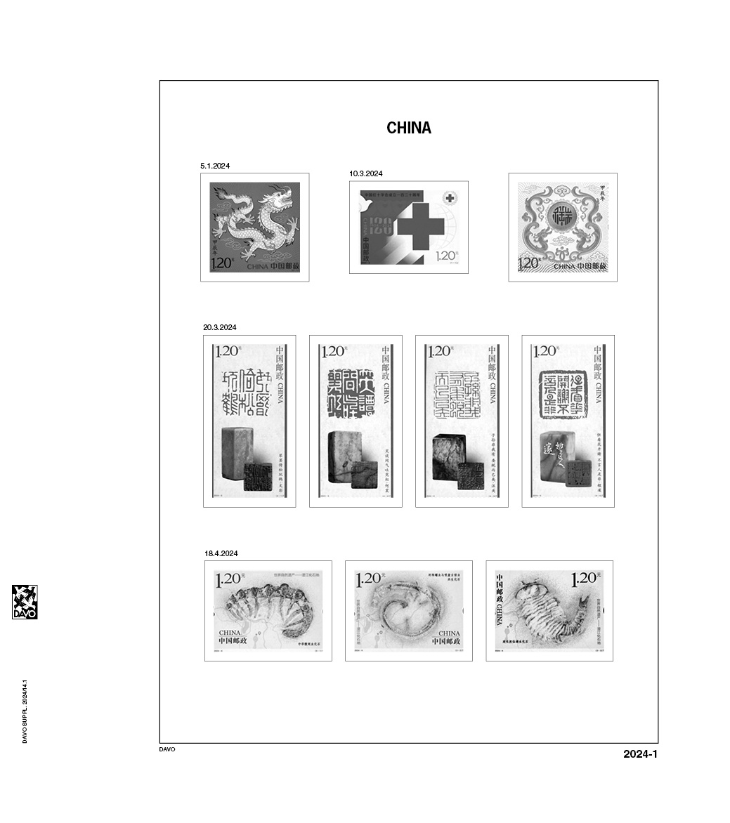 Jedes jahr erscheint die nachtrag China, das blätter aus extra schwerem papier (170 gr.) mit weichmacherfreien klemmstreifen enthält.