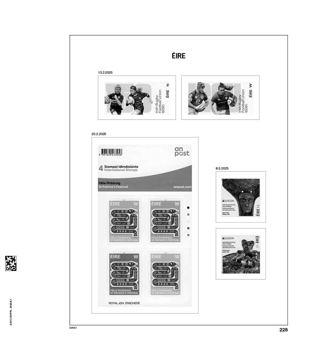 Jedes jahr erscheint die nachtrag Irland, das blätter aus extra schwerem papier (170 gr.) mit weichmacherfreien klemmstreifen enthält.