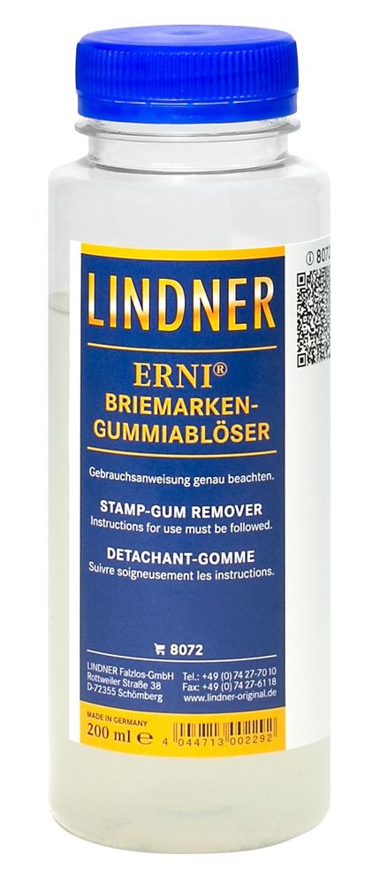Anwendung: flasche kurz schütteln und unverdünnt in eine geeignete schale geben. Tauchen sie briefmarken oder briefstücke vollständig in ERNI Gummi entferner ein. Nach etwa 1 stunde ist der harte original gummi in den meisten fällen vollständig aufgelöst. In seltenen, sehr schweren fällen sollte der gegenstand länger im ERNI gummientferner verbleiben. Tests haben gezeigt, dass sich auch "verfilzte stücke" einwandfrei lösen - innerhalb eines tages.
