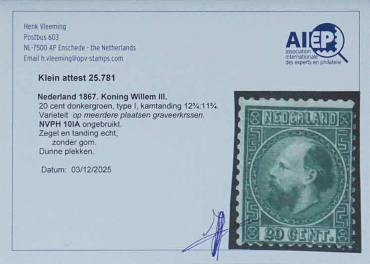 NVPH - 10 IA, Briefmarke (Niederlande), Ausgegeben in den Jahren: 1867-1868, Ungebraucht ohne Gummierung (MNG) - Befund