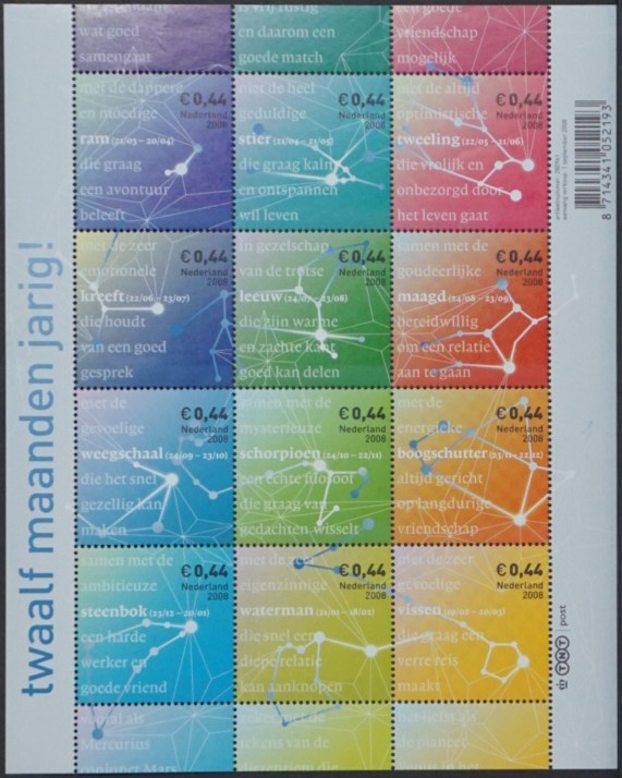 NVPH - 2581-2592, Kleinbögen (Niederlande), Ausgegeben im Jahr: 2008, Postfrisch (MNH)
