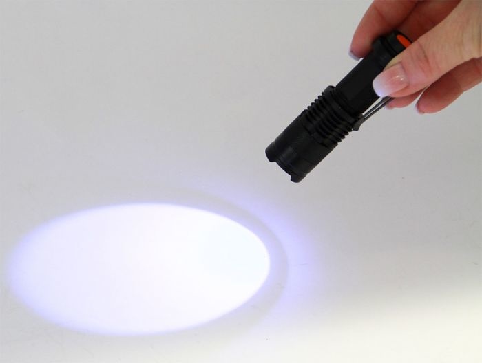 Das robuste Gehäuse ist aus schwarzem Aluminium, leicht und einfach zu trage Wird ohne Batterien (1 x AA) geliefert.