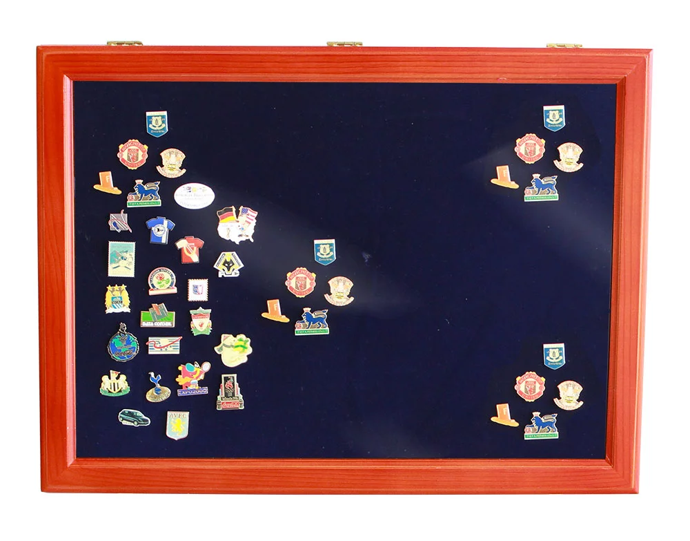 Das Innere dieses Displays ist mit blauem Velours ausgekleidet, um die Medaillen aufzubewahren. Gefertigt mit hochwertigen Beschlägen und Magnetverschluss. Dieses Display ist auch für die Wandmontage vorbereitet.