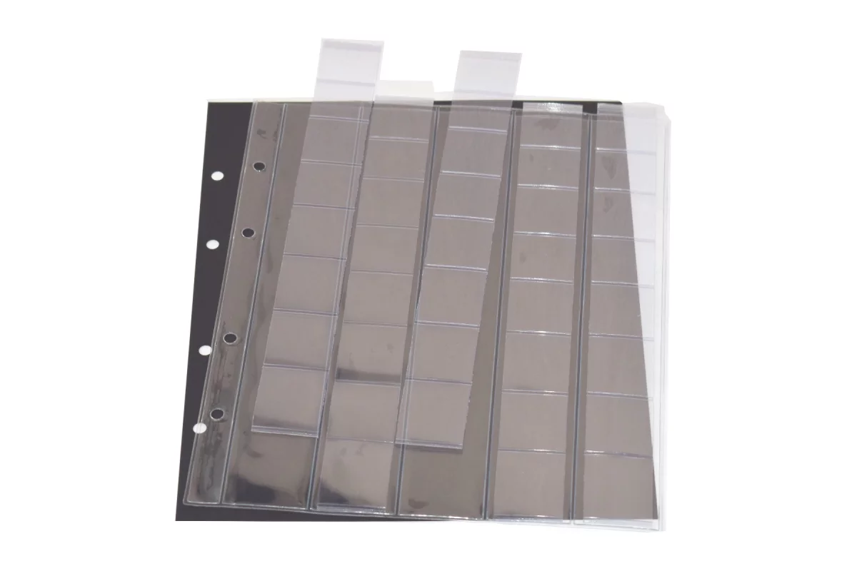 Die Blätter sind transparent (aus weichmacherfreier Folie), so dass die Münzen auf beiden Seiten sichtbar sind.