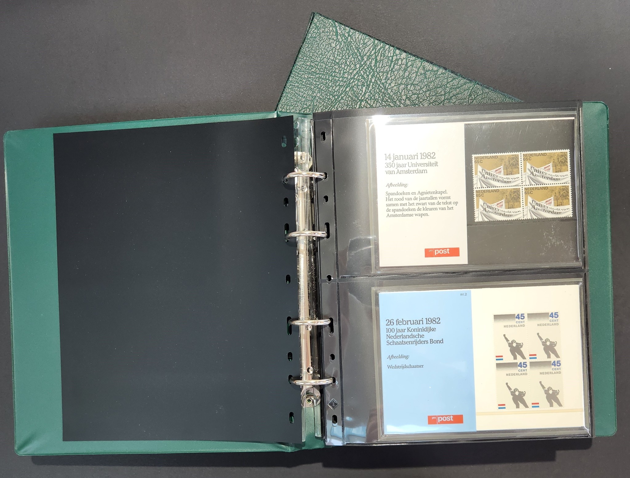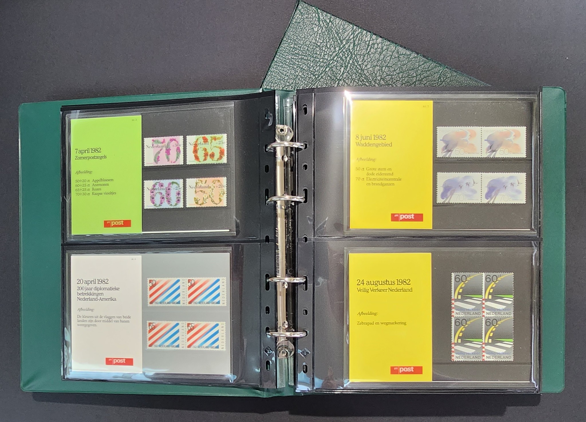Die Kollektion kommt in 5 Leuchtturm Optima alben Niederlande, versehen mit dem wappen der Niederlande und mit dem aufdruck Niederlande. Diese alben werden mit passenden kassetten geliefert.