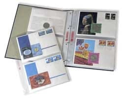 E.C.U. letters album , uitgevoerd met een blauwe band met opdruk. This album has 10 insert sheets, in which you can place 40 letters. This album also has white dividers.
