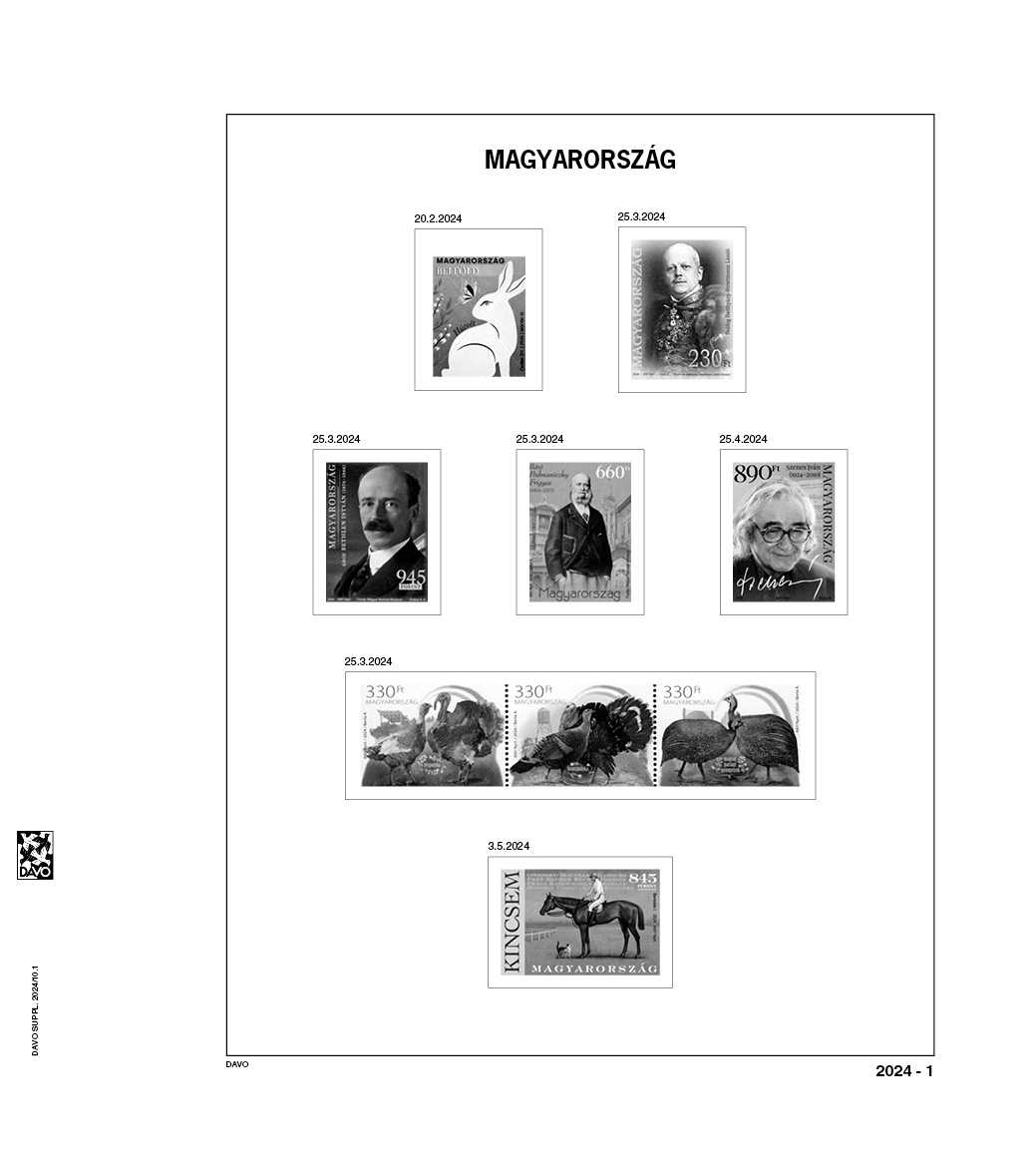 Every year the supplement Hungary appears, which contains sheets of extra heavy paper (170 grs.) with plasticizer-free mounts.