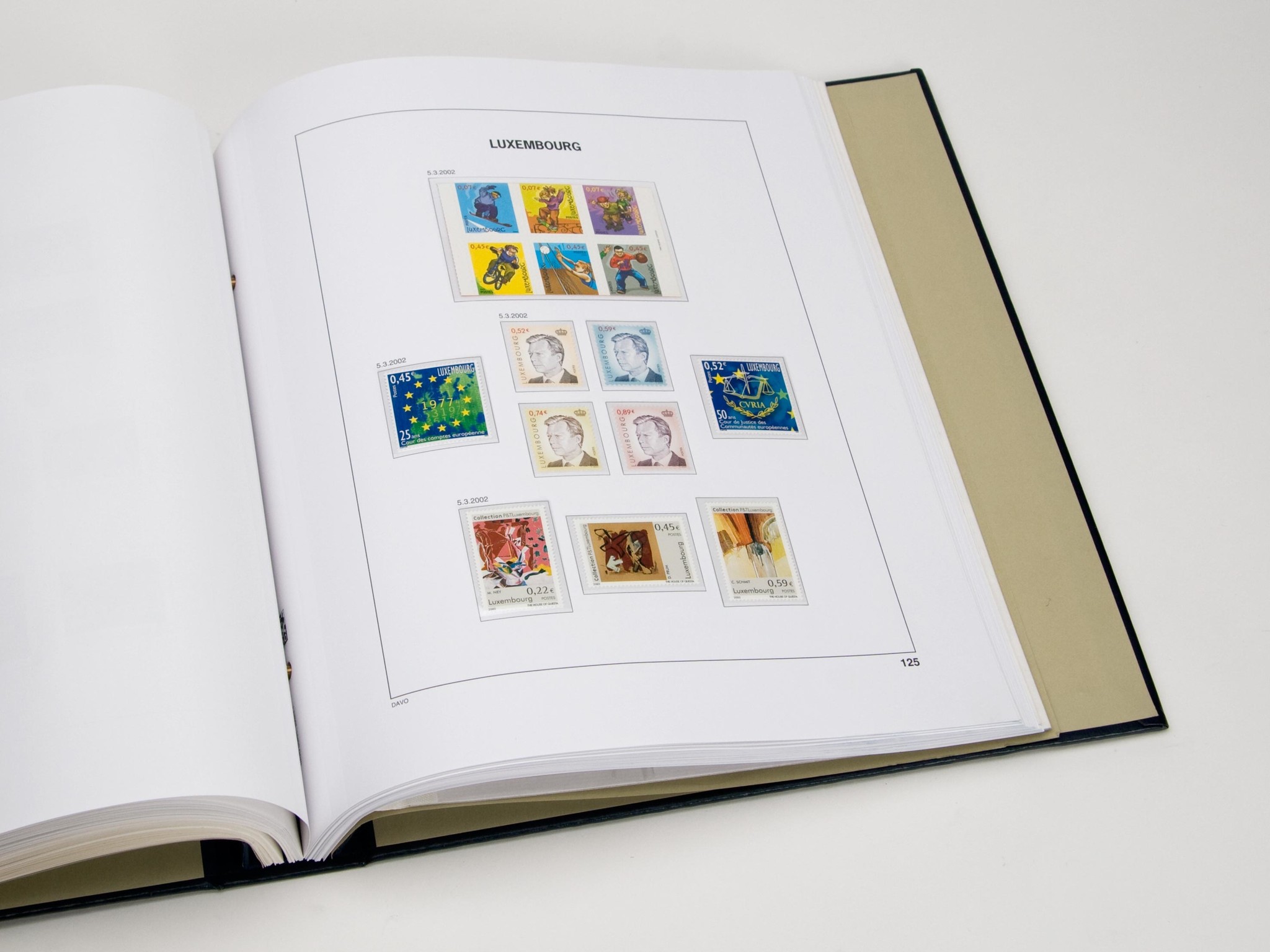 Every year the supplement Luxembourg appears, which contains sheets of extra heavy paper (170 grs.) with plasticizer-free mounts.