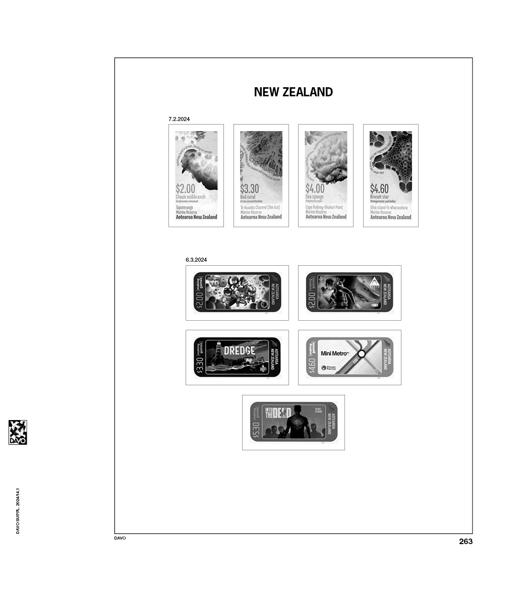 Every year the supplement New Zealand appears, which contains sheets of extra heavy paper (170 grs.) with plasticizer-free mounts.