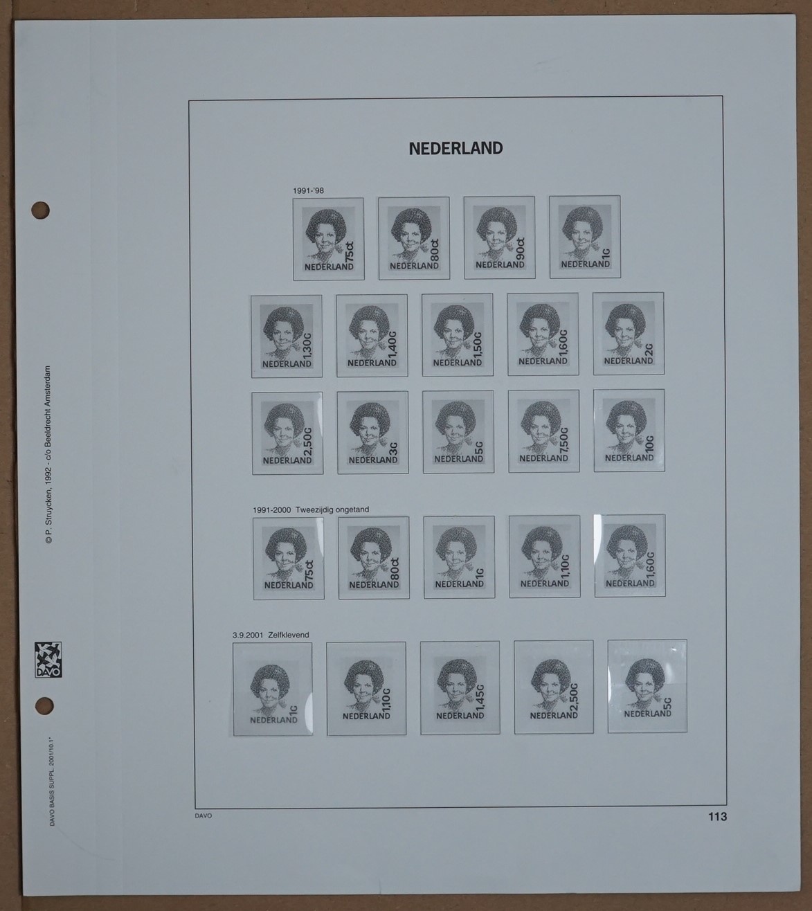 With a size of 275 x 310 mm and a 2 Holes perforation, these pre-printed sheets fit perfectly in the corresponding 1991 albums Each sheet is equipped with black border lines and image(s) in Black on sheets in the color White, e.g. stamps, miniature-sheets, stamp booklets, etc. that belong in this pre-printed album sheet. This gives you a clear overview of what you already have and what is still missing. This way, you can keep your collection organized and up to date, sorted by year or period.
