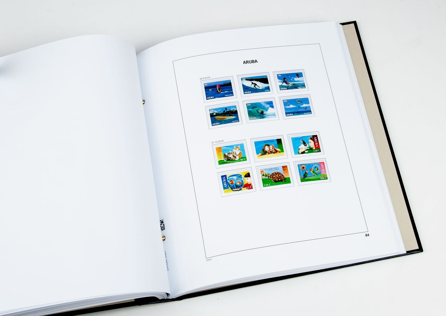 With a size of 275 x 310 mm and a 2 Holes perforation, these pre-printed sheets fit perfectly in the corresponding 2018 albums Each sheet is equipped with black border lines and image(s) in Black on sheets in the color White, e.g. stamps, miniature-sheets, stamp booklets, etc. that belong in this pre-printed album sheet. This gives you a clear overview of what you already have and what is still missing. This way, you can keep your collection organized and up to date, sorted by year or period.