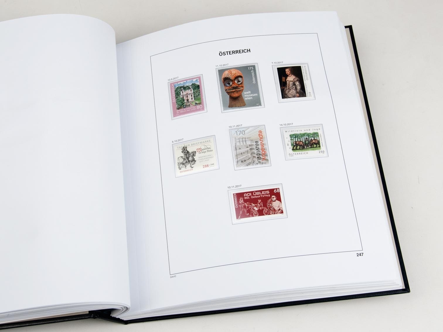With a size of 275 x 310 mm and a 2 Holes perforation, these pre-printed sheets fit perfectly in the corresponding 2017 albums Each sheet is equipped with black border lines and image(s) in Black on sheets in the color White, e.g. stamps, miniature-sheets, stamp booklets, etc. that belong in this pre-printed album sheet. This gives you a clear overview of what you already have and what is still missing. This way, you can keep your collection organized and up to date, sorted by year or period.