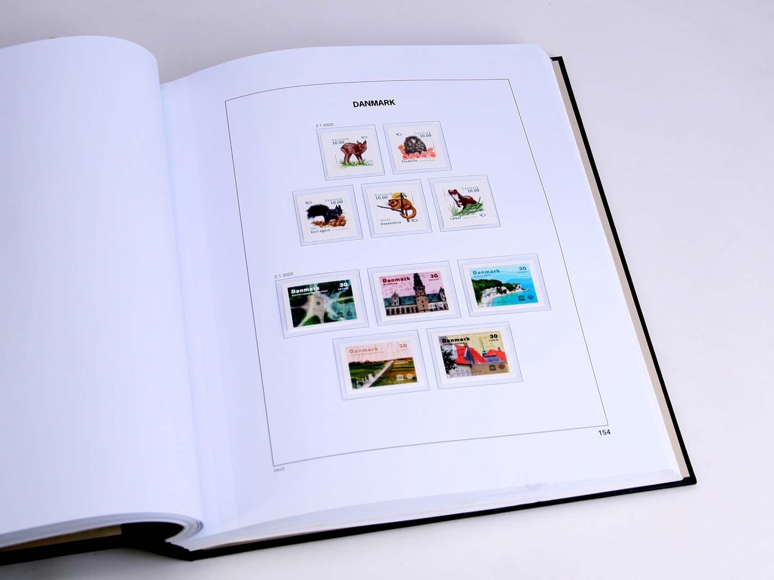 The supplements with pre-printed sheets of Davo, of the type DeLuxe, are made from particularly sturdy, wood-free and age-resistant cardboard with a weight of 170 gr/m2. These high-quality sheets are available in the color White and equipped with acid- and plasticizer-free protect your stamps, stamp booklets, miniature-sheets, etc. optimally against external influences, without obstructing the view of your collection.
