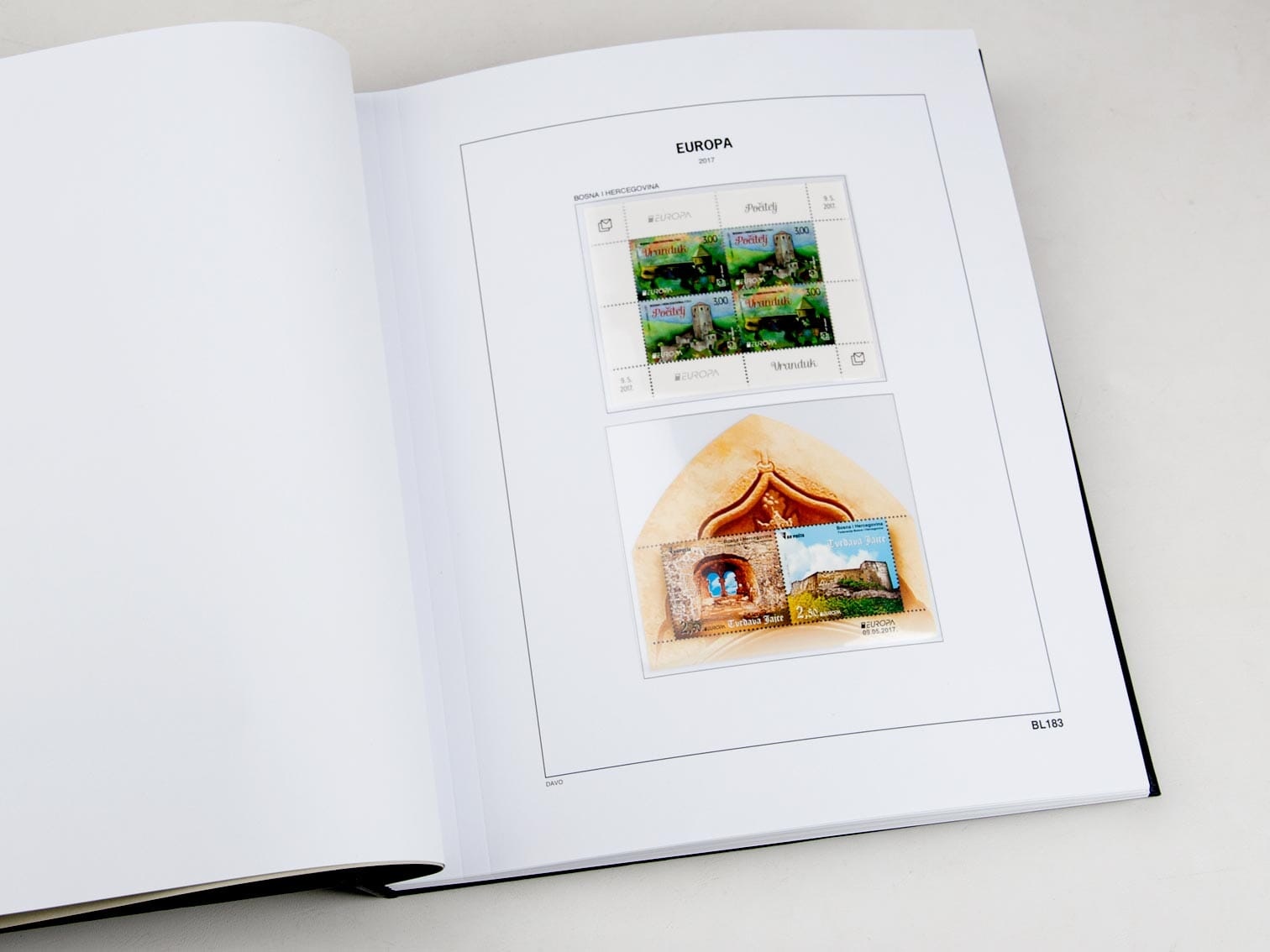With a size of 275 x 310 mm and a 2 Holes perforation, these pre-printed sheets fit perfectly in the corresponding 2017 albums Each sheet is equipped with black border lines and image(s) in Black on sheets in the color White, e.g. stamps, miniature-sheets, stamp booklets, etc. that belong in this pre-printed album sheet. This gives you a clear overview of what you already have and what is still missing. This way, you can keep your collection organized and up to date, sorted by year or period.