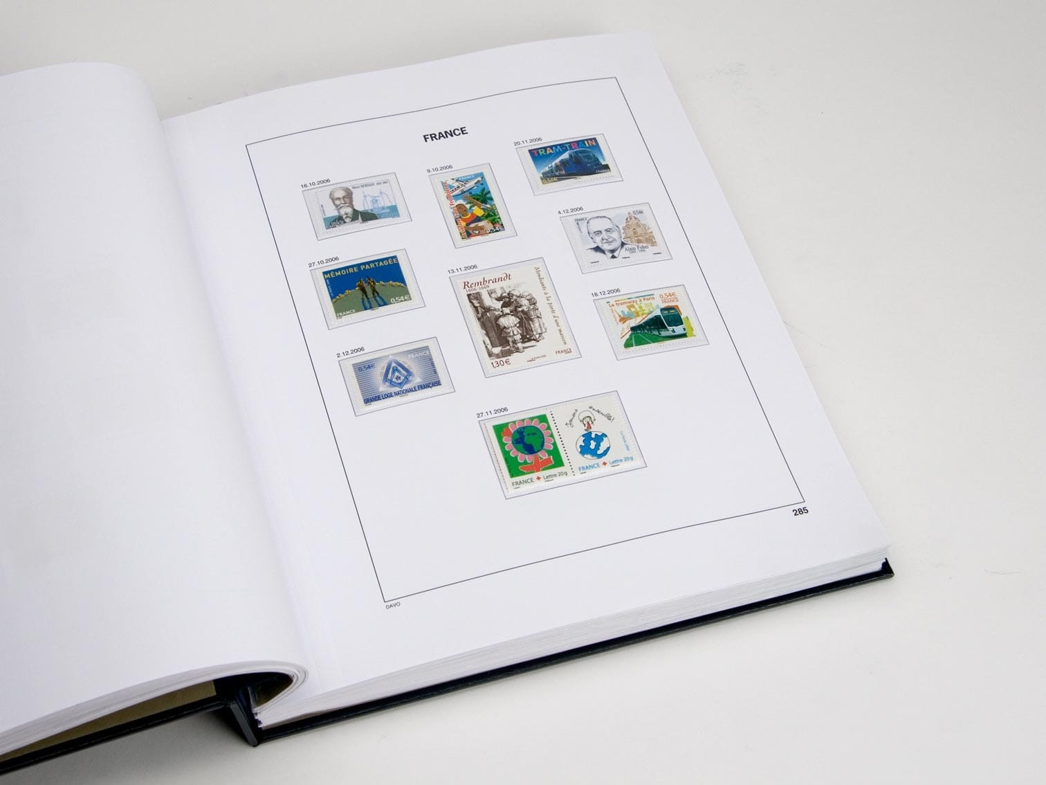 The supplements with pre-printed sheets of Davo, of the type DeLuxe, are made from particularly sturdy, wood-free and age-resistant cardboard with a weight of 170 gr/m2. These high-quality sheets are available in the color White and equipped with acid- and plasticizer-free protect your stamps, stamp booklets, miniature-sheets, etc. optimally against external influences, without obstructing the view of your collection.