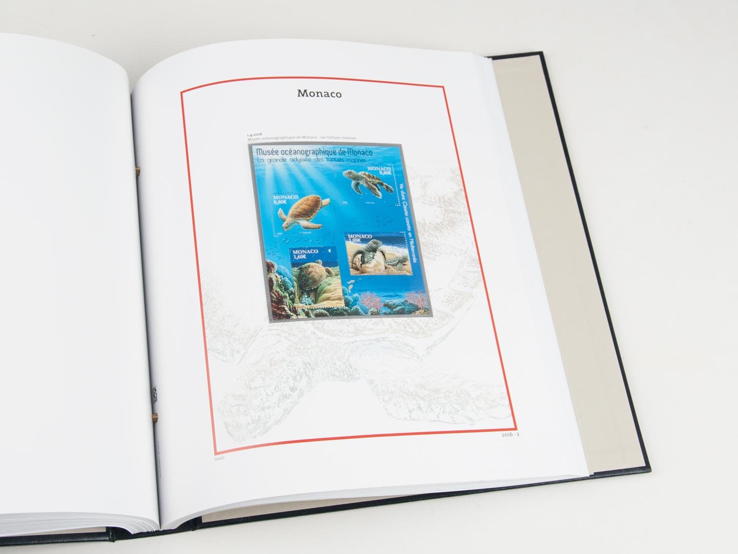 Every year the supplement Monaco appears, this contains sheets of colored and illustrated paper of extra heavy paper (200 grs.) and plasticizer free mounts.