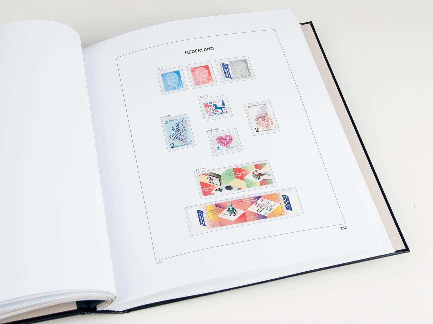 With a size of 275 x 310 mm and a 2 Holes perforation, these pre-printed sheets fit perfectly in the corresponding 2015 albums Each sheet is equipped with black border lines and image(s) in Black on sheets in the color White, e.g. stamps, miniature-sheets, stamp booklets, etc. that belong in this pre-printed album sheet. This gives you a clear overview of what you already have and what is still missing. This way, you can keep your collection organized and up to date, sorted by year or period.