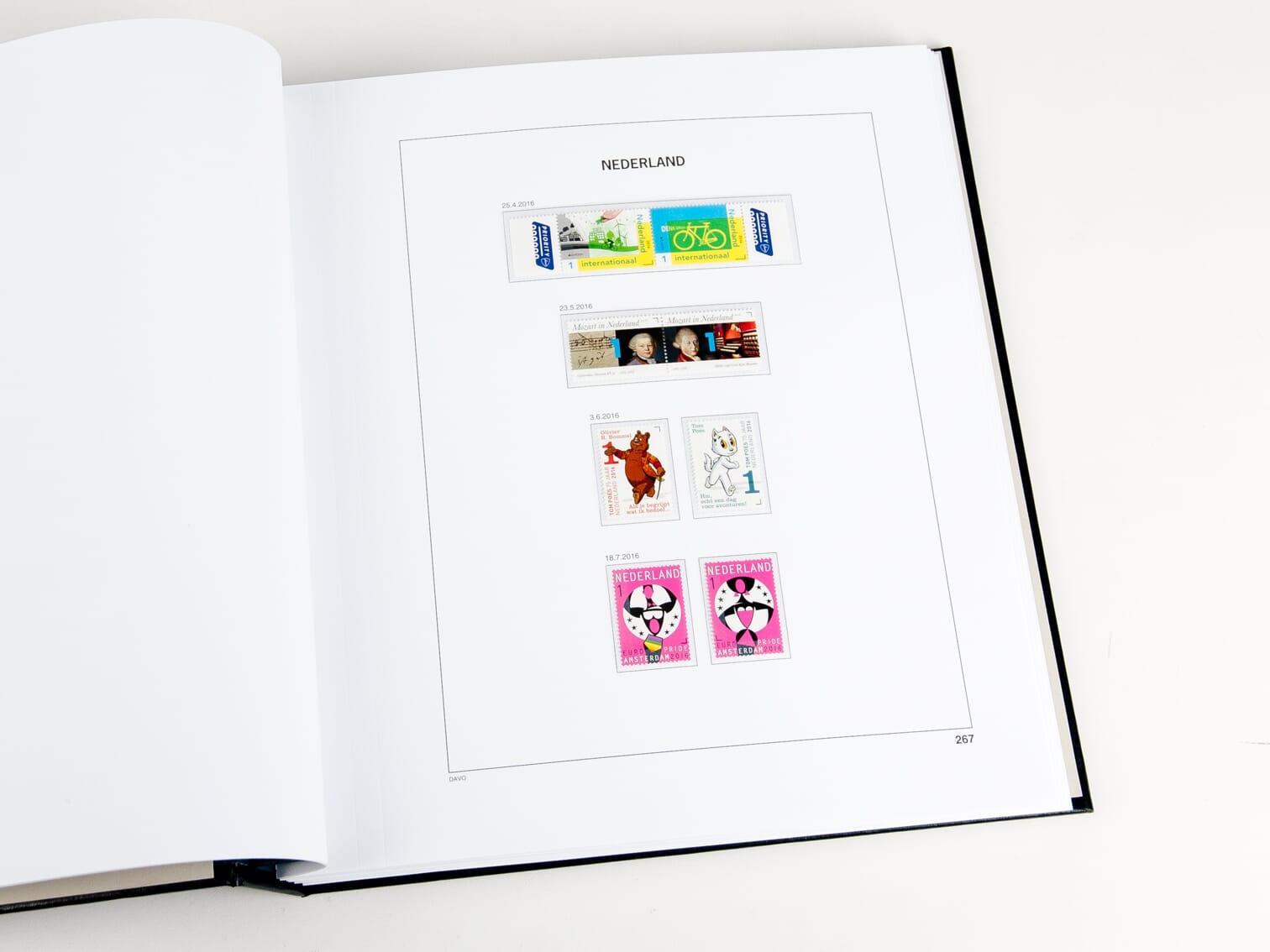 With a size of 275 x 310 mm and a 2 Holes perforation, these pre-printed sheets fit perfectly in the corresponding 2016 albums Each sheet is equipped with black border lines and image(s) in Black on sheets in the color White, e.g. stamps, miniature-sheets, stamp booklets, etc. that belong in this pre-printed album sheet. This gives you a clear overview of what you already have and what is still missing. This way, you can keep your collection organized and up to date, sorted by year or period.