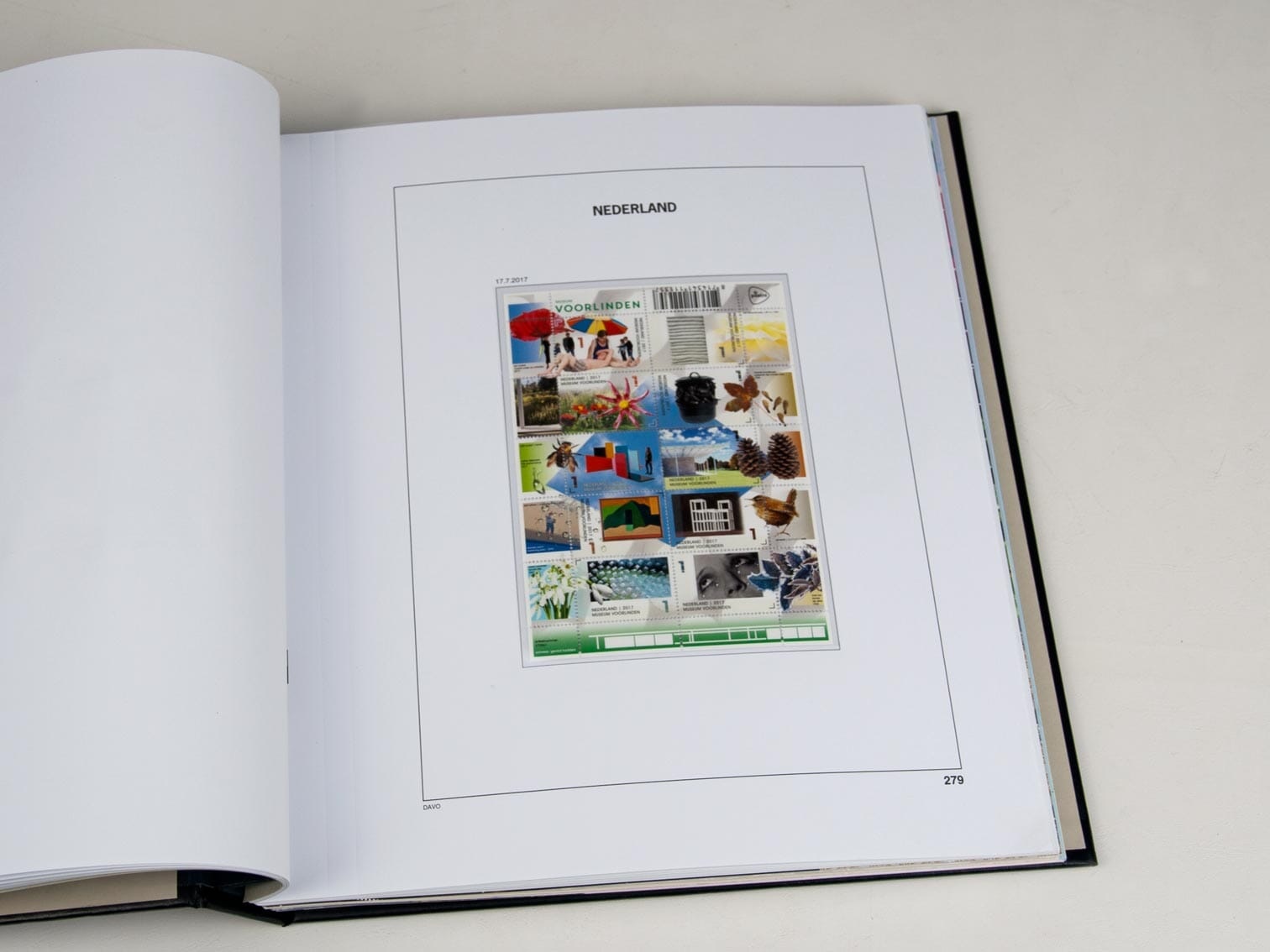 With a size of 275 x 310 mm and a 2 Holes perforation, these pre-printed sheets fit perfectly in the corresponding 2017 albums Each sheet is equipped with black border lines and image(s) in Black on sheets in the color White, e.g. stamps, miniature-sheets, stamp booklets, etc. that belong in this pre-printed album sheet. This gives you a clear overview of what you already have and what is still missing. This way, you can keep your collection organized and up to date, sorted by year or period.