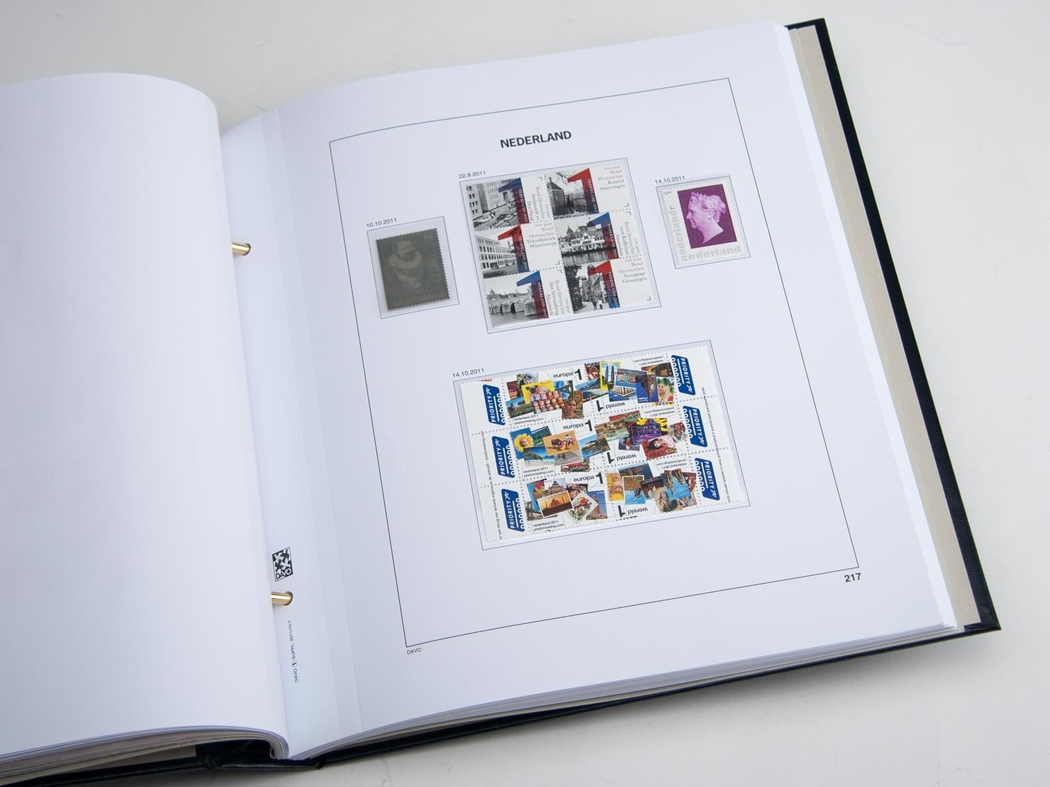 The supplements with pre-printed sheets of Davo, of the type DeLuxe, are made from particularly sturdy, wood-free and age-resistant cardboard with a weight of 170 gr/m2. These high-quality sheets are available in the color White and equipped with acid- and plasticizer-free protect your stamps, stamp booklets, miniature-sheets, etc. optimally against external influences, without obstructing the view of your collection.