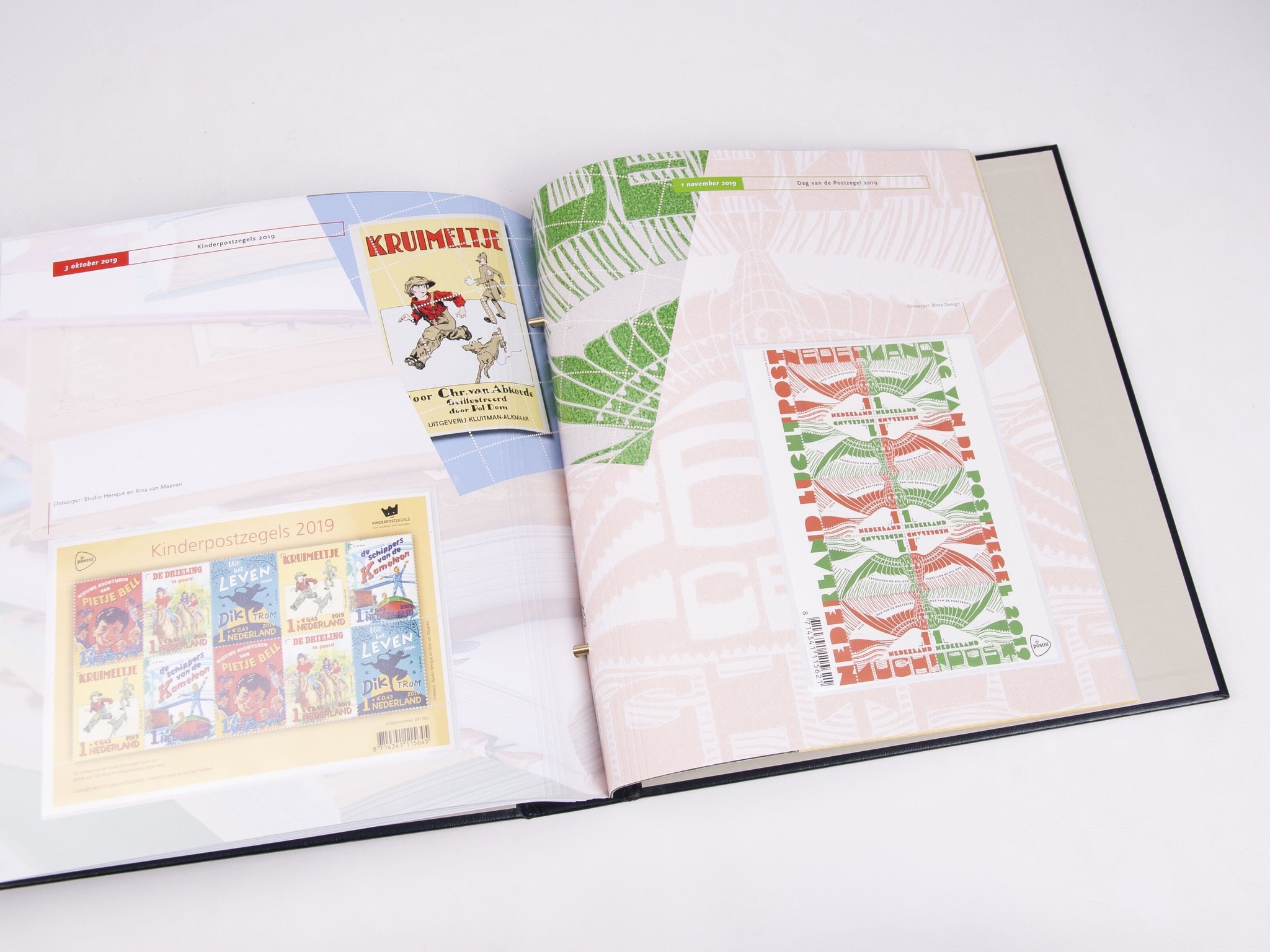With a size of 275 x 310 mm and a 2 Holes perforation, these pre-printed sheets fit perfectly in the corresponding 2019 albums Each sheet is equipped with black border lines and image(s) in color, e.g. stamps, miniature-sheets, stamp booklets, etc. that belong in this pre-printed album sheet. This gives you a clear overview of what you already have and what is still missing. This way, you can keep your collection organized and up to date, sorted by year or period.
