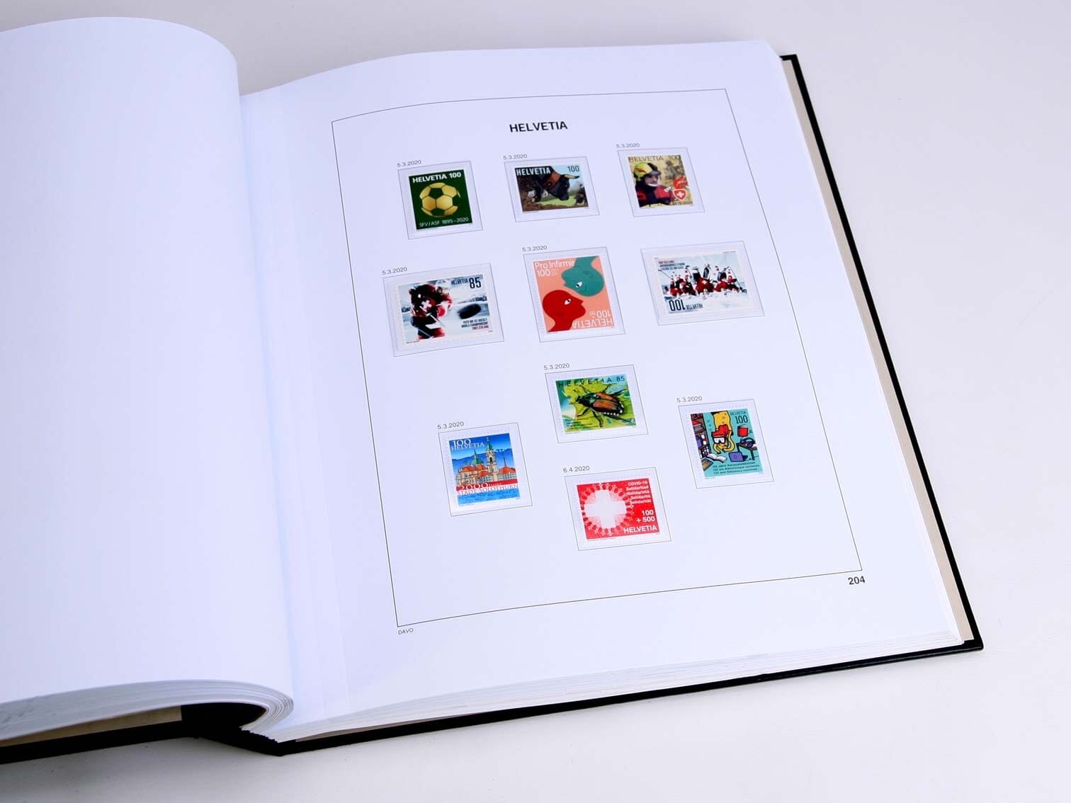 With a size of 275 x 310 mm and a 2 Holes perforation, these pre-printed sheets fit perfectly in the corresponding 2020 albums Each sheet is equipped with black border lines and image(s) in Black on sheets in the color White, e.g. stamps, miniature-sheets, stamp booklets, etc. that belong in this pre-printed album sheet. This gives you a clear overview of what you already have and what is still missing. This way, you can keep your collection organized and up to date, sorted by year or period.