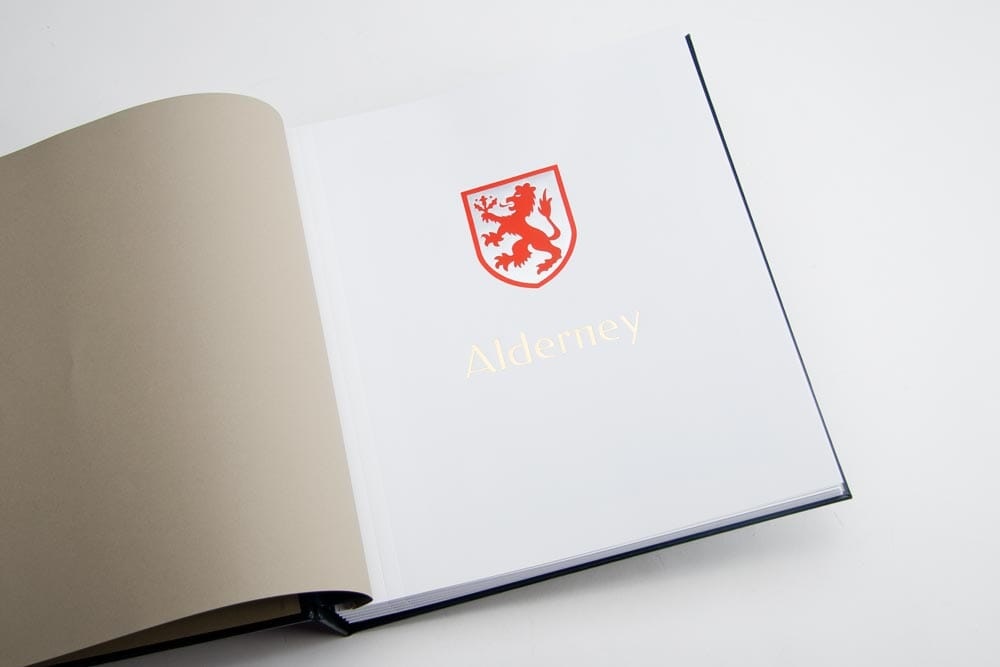 The luxery Tittle Page Alderney with gold print, this sheet is of extra heavy paper (170 grs.).