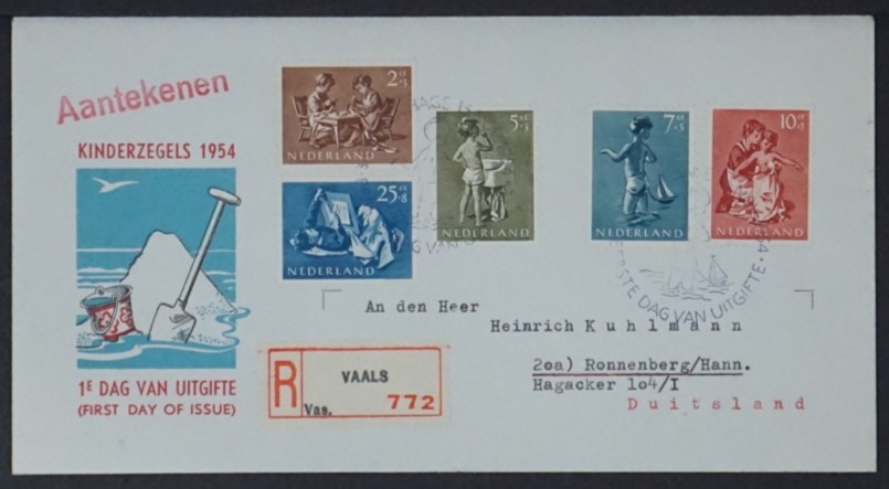 NVPH - , First Day Cover (Netherlands), Issued in the year: 1954, Addressed (A) - Open flap (OF)