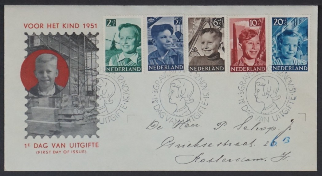 NVPH - , First Day Cover (Netherlands), Issued in the year: 1951, Addressed (A) - Open flap (OF)