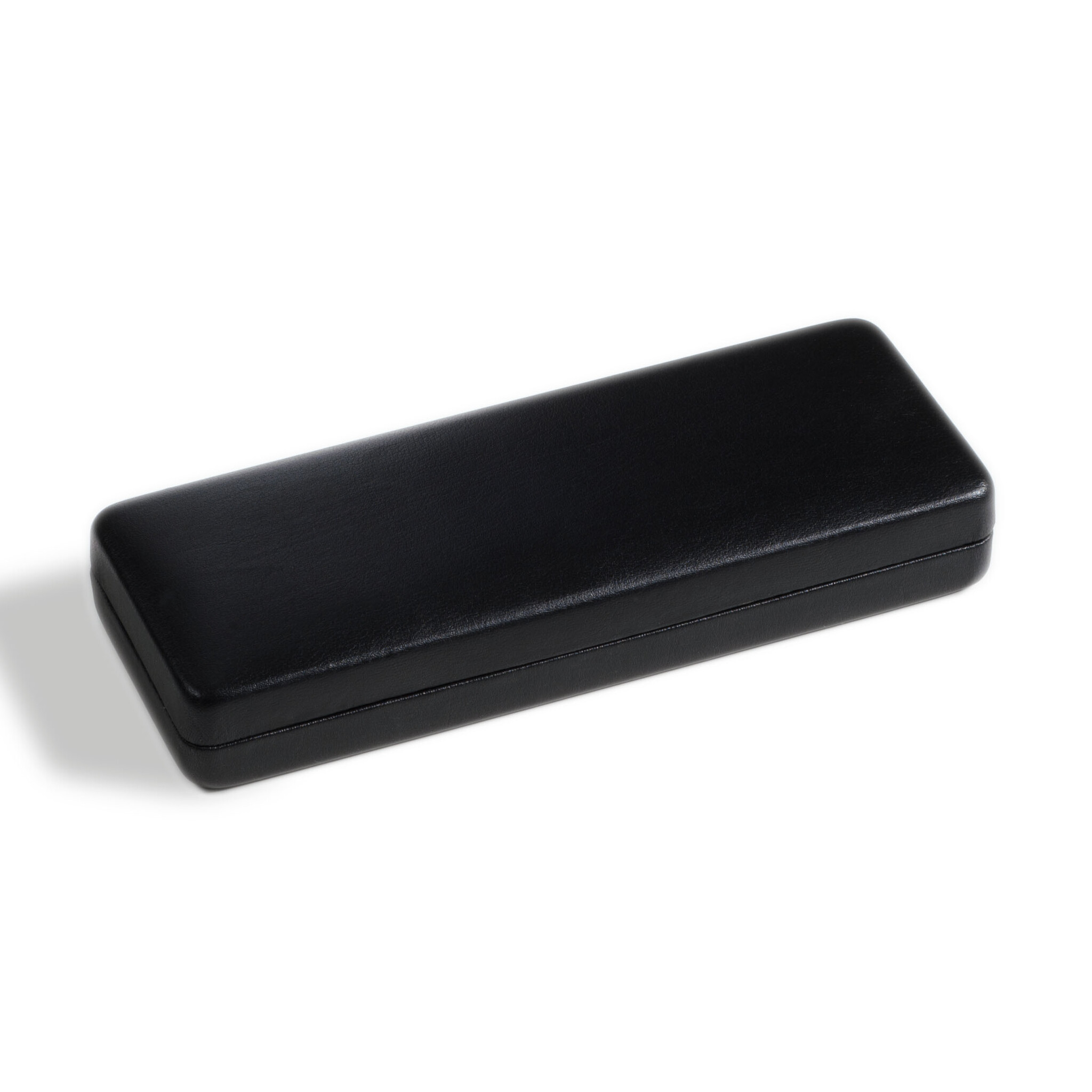 High quality coin cases produced from metal with a leather-look finish and fitted with a black velvet lining on the inside.