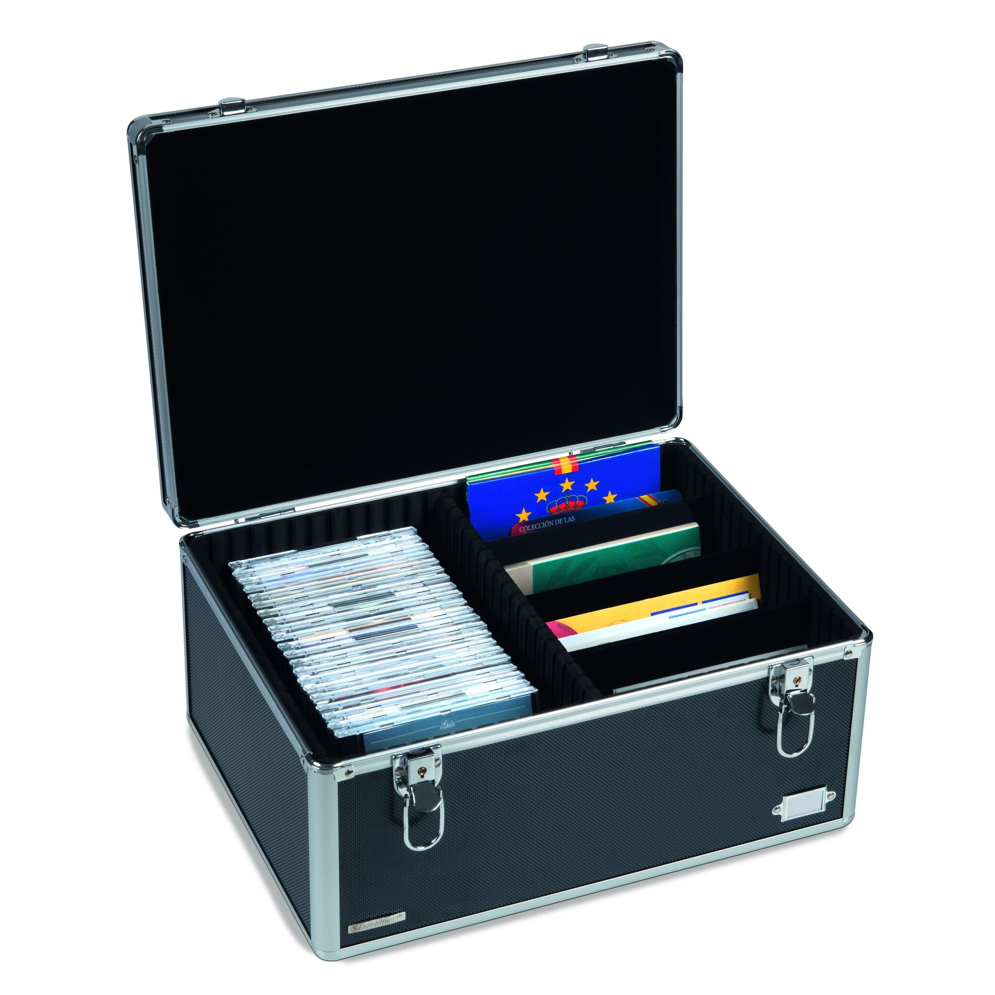 Capacity: 1,500 postcards, 65 CD sleeves wide (jewel case), 130 CD sleeves narrow (slim case).