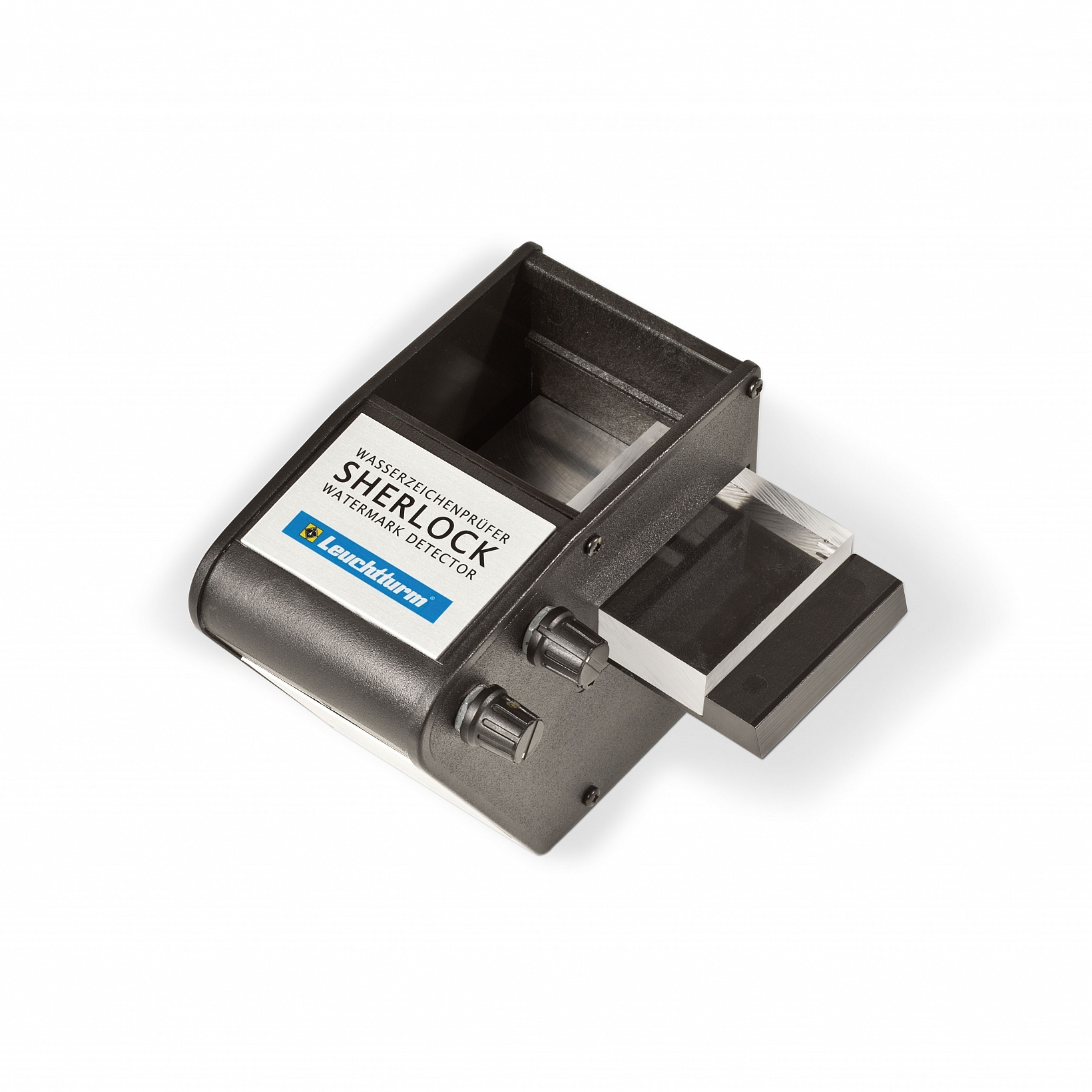 The special feature of this SHERLOCK are the different light colors (white, red, green and blue) that can be chosen, for example, by illuminating a stamp with a red backing with red light, neutralizing the red printing ink visible on the back of the stamp. The brightness can be infinitely adjusted. The maximum size of the stamp to be checked is 50 x 45 mm.