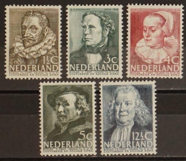 NVPH - 305-309, Postage stamps (Netherlands), Issued in the year: 1938, Mint Not Hinghed (MNH)