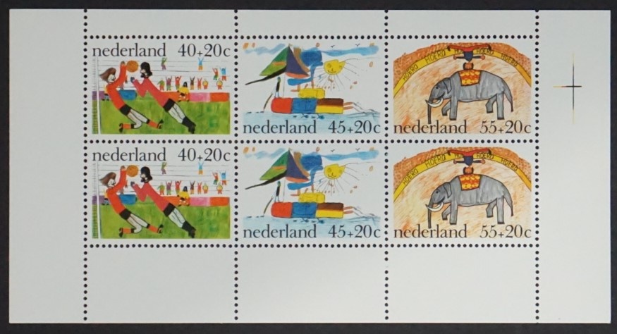 Original dutch stamp block issued as a single collectible unit containing one or more related stamps within official releases