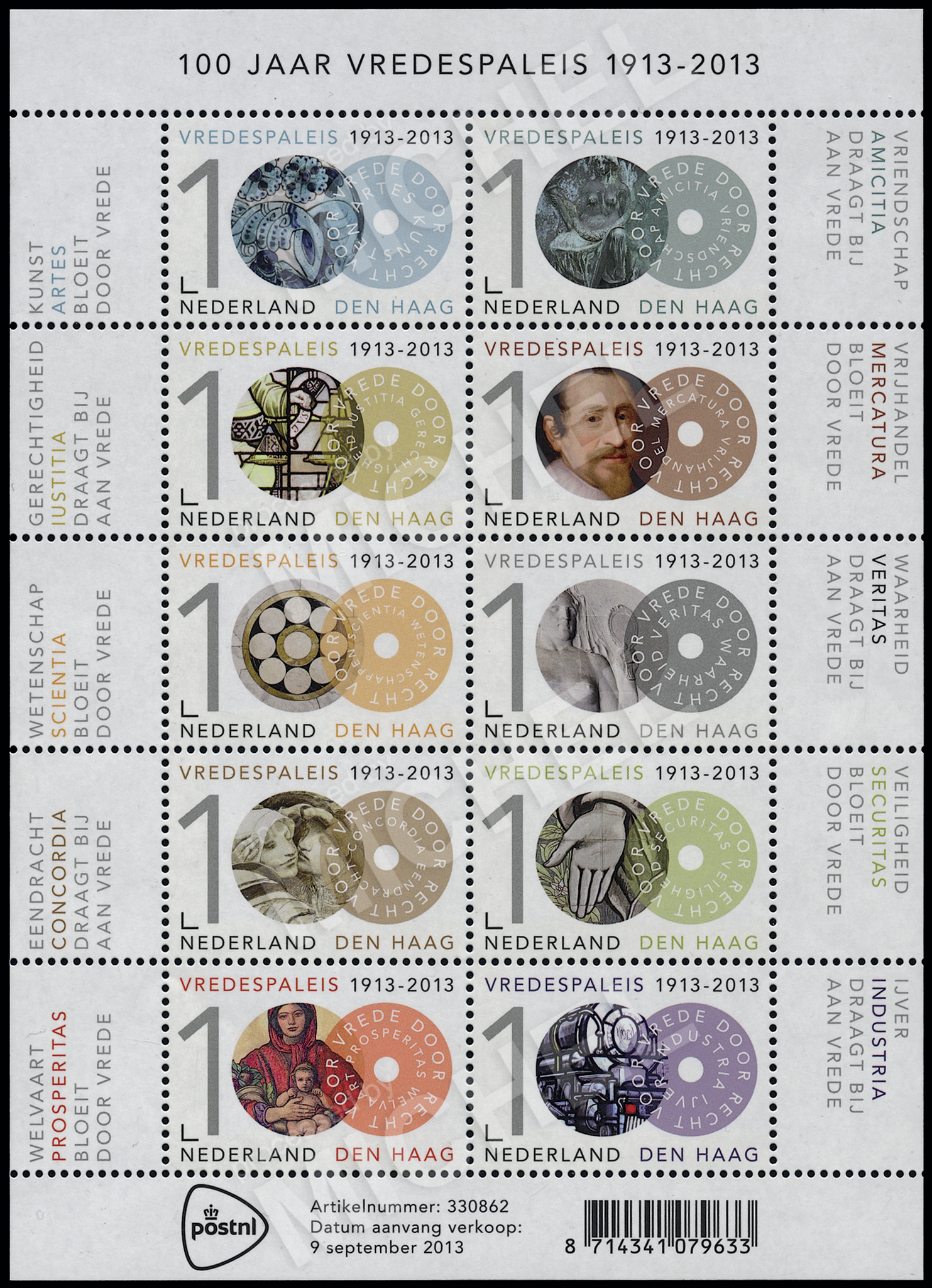 Expand your stamp collection with the NVPH 3096-3105, Sheetlet from Netherlands, issued in the year 2013.