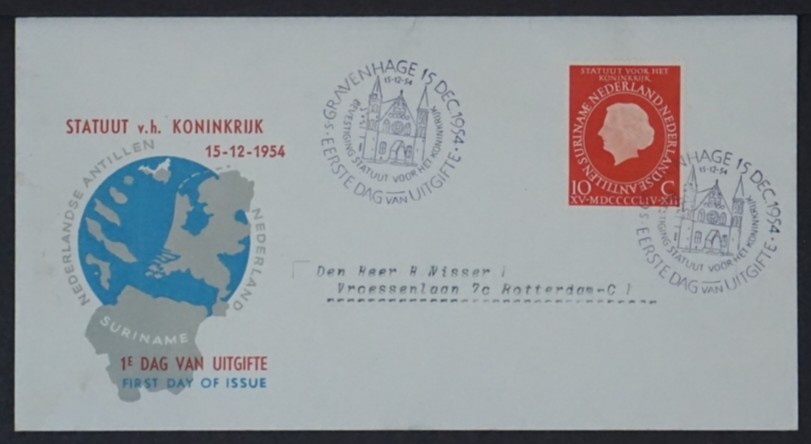 NVPH - , First Day Cover (Netherlands), Issued in the year: 1954, Addressed (A) - Open flap (OF)