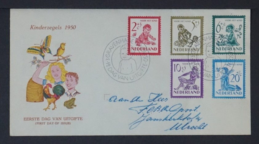 NVPH - , First Day Cover (Netherlands), Issued in the year: 1950, Addressed (A) - Expert certificate - Open flap (OF)