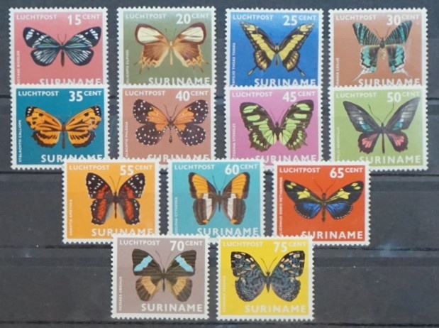 Surinamese Airmail stamps are postage stamps specifically issued for the transportation of mail by aircraft. They reflect the development of international air routes and mark a new phase of speed and extended reach within global postal networks, as air transport became a structural component of worldwide communication systems.