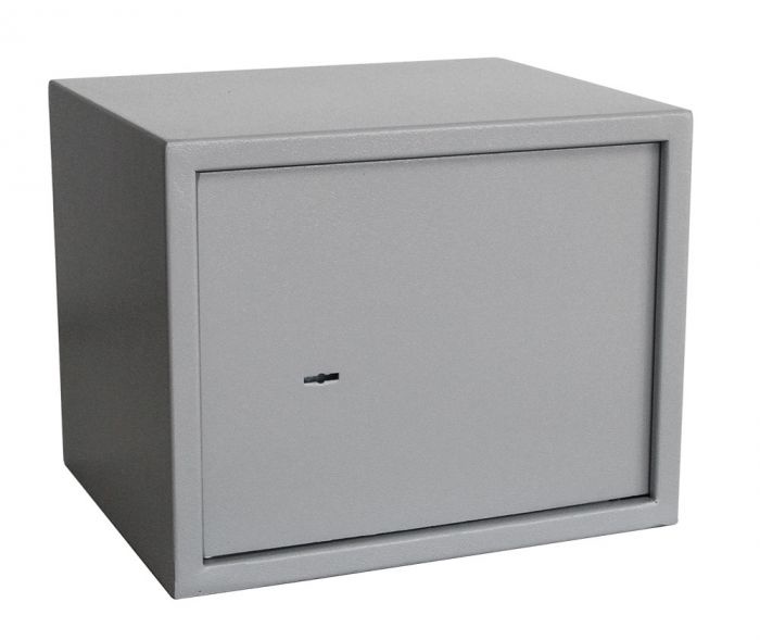 This series of Safes are available in 3 sizes and are made of solid steel. The walls are made of 2 mm thick steel, the door of 4 mm thick steel. 2 solid steel latches close the doors.