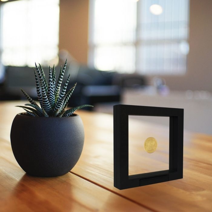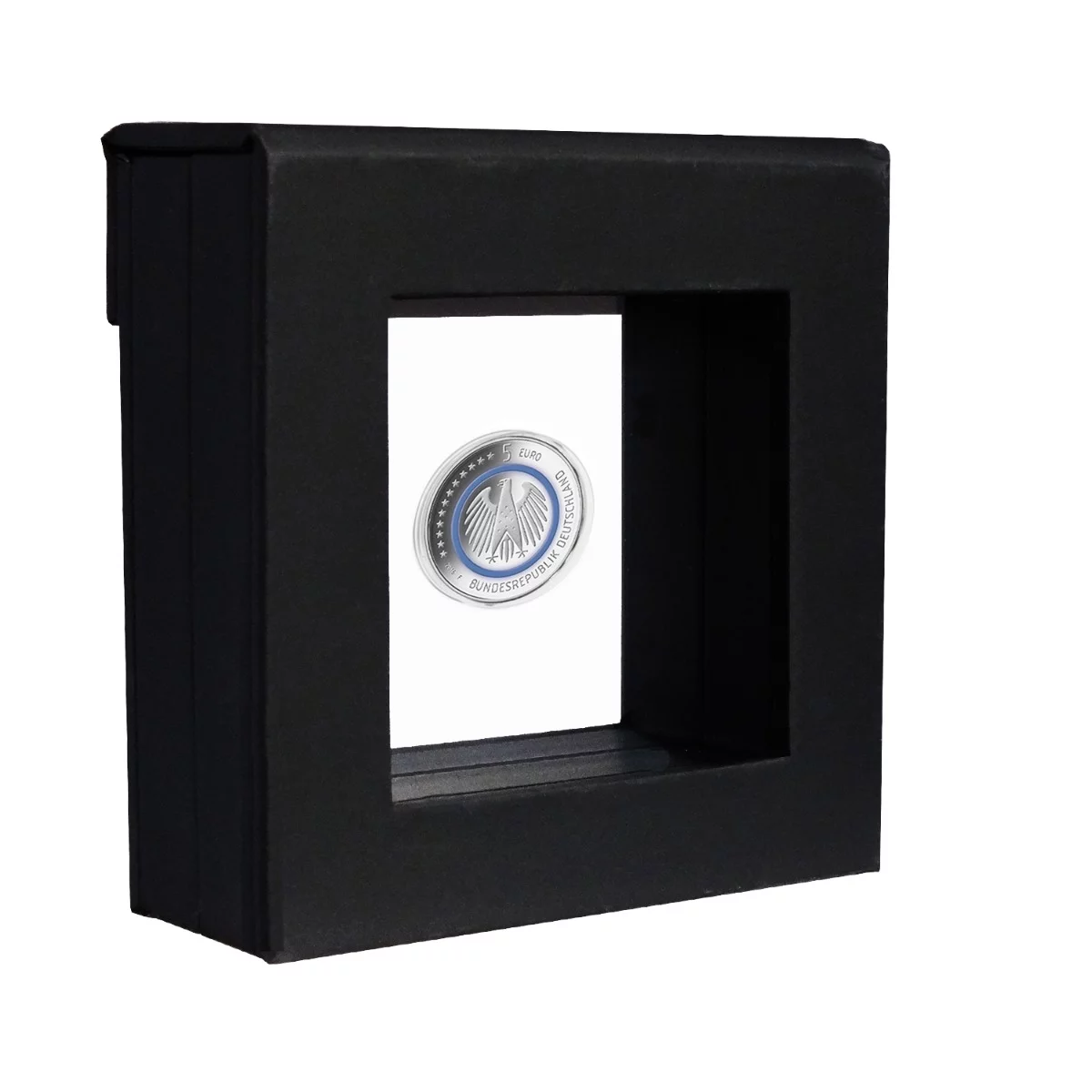 The practical magnetic clip closure allows the frame to be fully opened and closed like a book. The collectible can be taken out at any time to exchange it for another collectible. It is placed on one of the two silicone membrane sheets and the frame is then closed. The object is now enclosed by both silicone membrane sheets and remains in place. The two halves of the frame are held firmly together by a magnetic clasp.