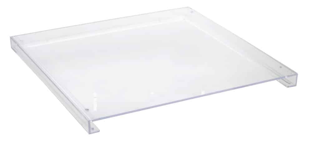Space saving, stackable crystal clear acrylic glass drawer. Drawers fit together like a puzzle to prevent shifting when stacked. Stackable and with a handle for effortless drawer opening. These drawers can also be used single.