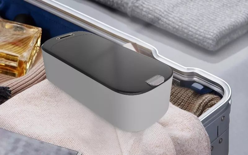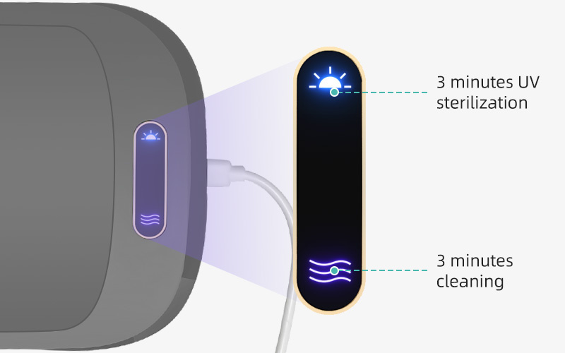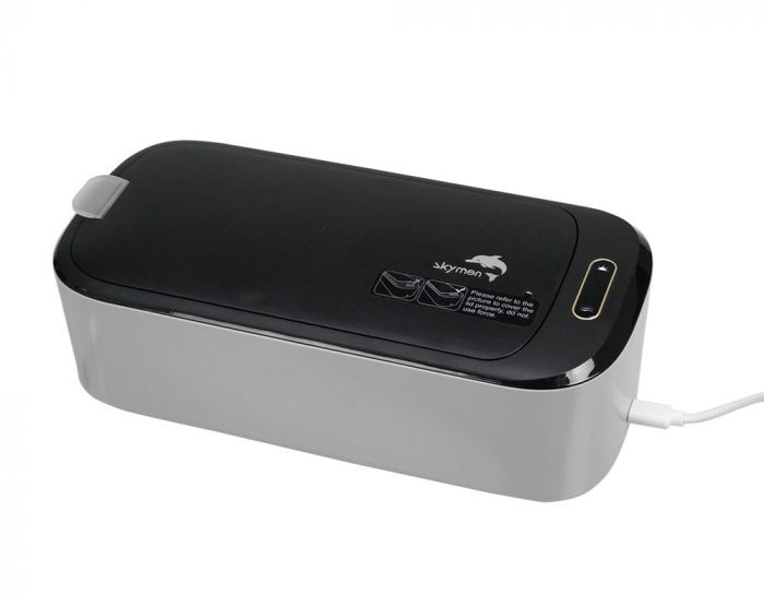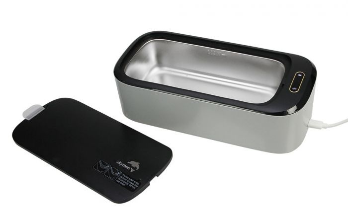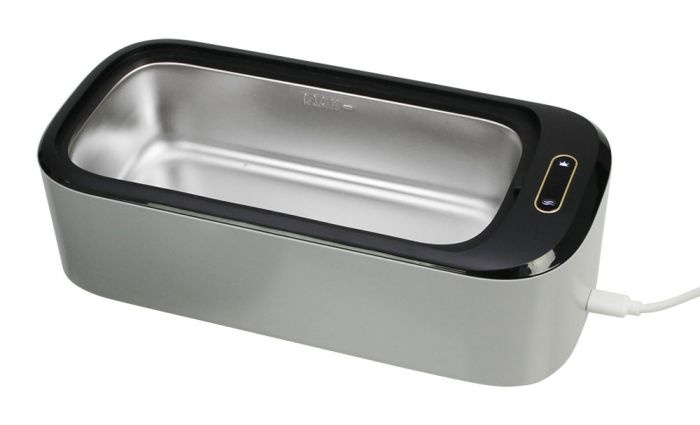 This professional double ultrasonic cleaner has a black lid and light gray ABS plastic housing, a stainless steel reservoir of 550 ml. This cleaner has 2 systems the first is a 3 minute ultrasonic cleaning with a frequency of 46,000 HZ (24 watts) and the second is a 3 minute sterilization with 2 UV-C lamps.