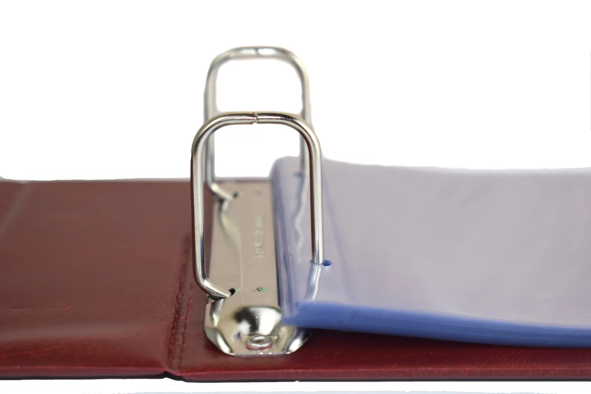 The pictured deluxe 2 ring album is beautifully executed with a (padded) faux leather binding. Finished with a gold logo on the front.