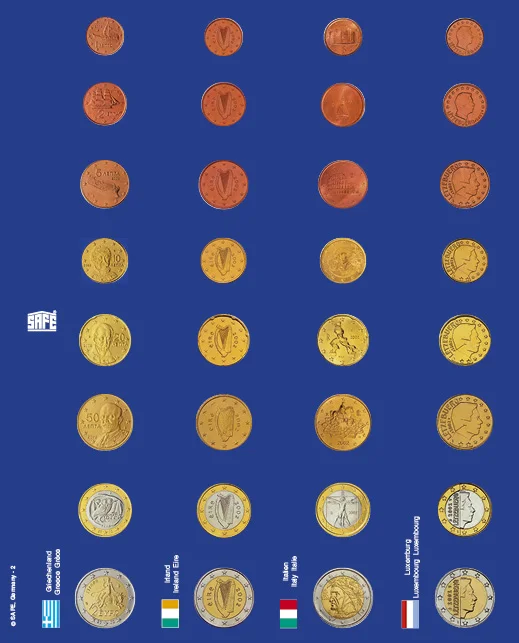 Patented insert sheets where the coins can be pressed into. The coins can be viewed from the front and back. You can give you coins extra protection, by sliding a protection sleeve (SA.N-0007859) over them.