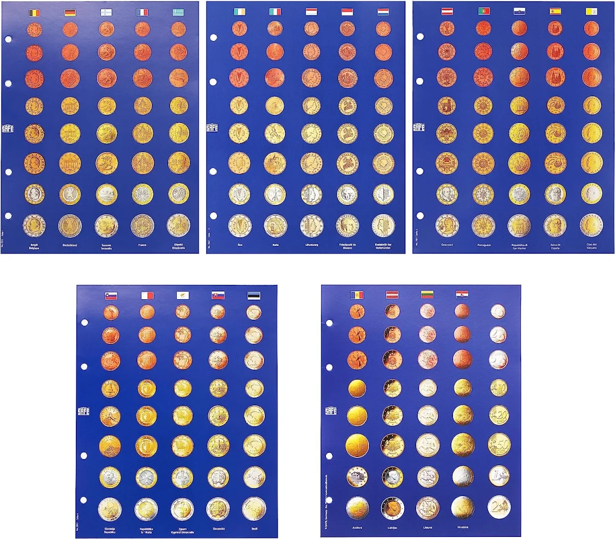 Patented insert sheets where the coins can be pressed into. The coins can be viewed from the front and back. You can give you coins extra protection, by sliding a protection sleeve (SA.N-0007859) over them.