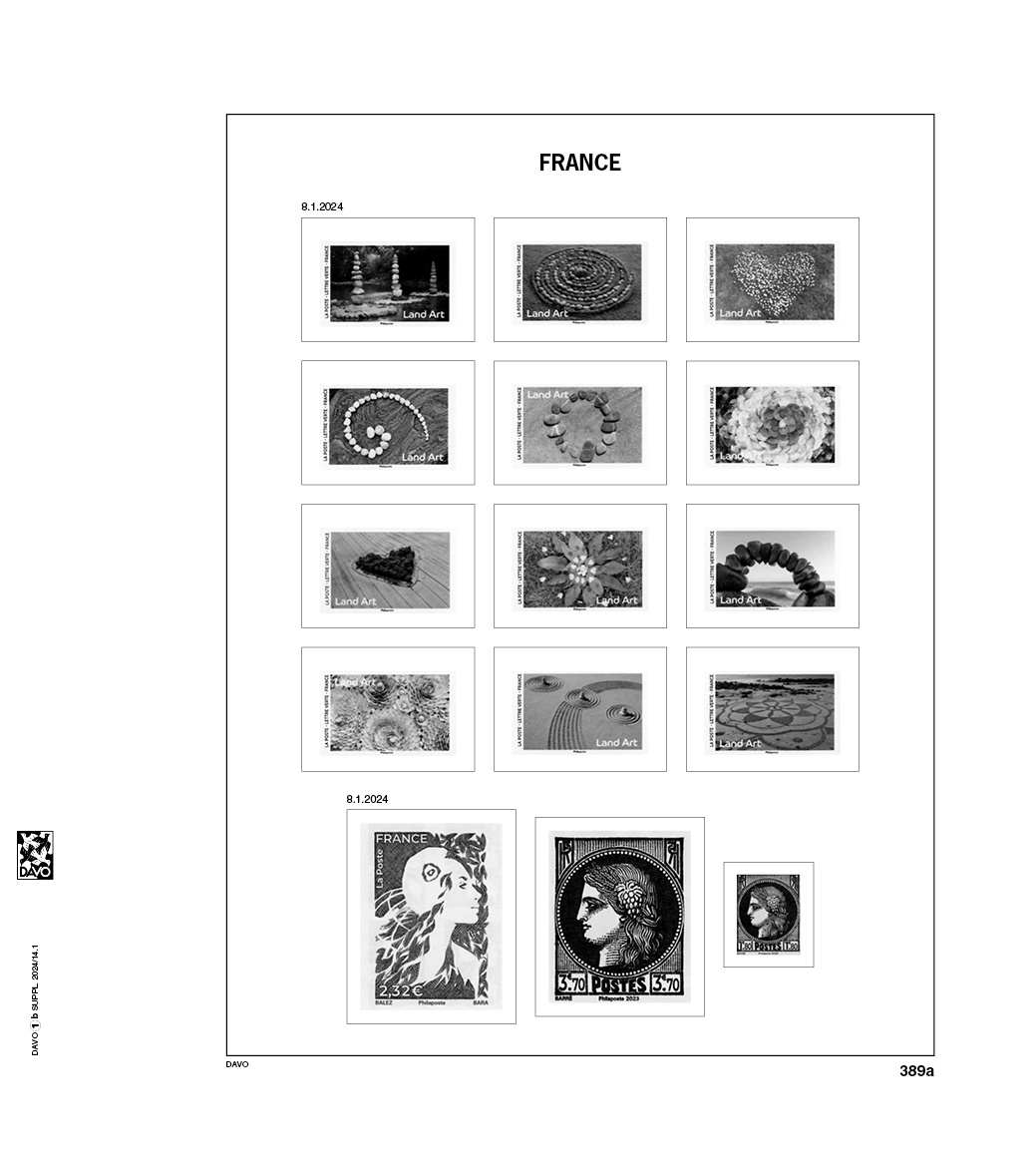 With a size of 275 x 310 mm and a 2 Holes perforation, these pre-printed sheets fit perfectly in the corresponding 2024 albums Each sheet is equipped with black border lines and image(s) in Black on sheets in the color White, e.g. stamps, miniature-sheets, stamp booklets, etc. that belong in this pre-printed album sheet. This gives you a clear overview of what you already have and what is still missing. This way, you can keep your collection organized and up to date, sorted by year or period.