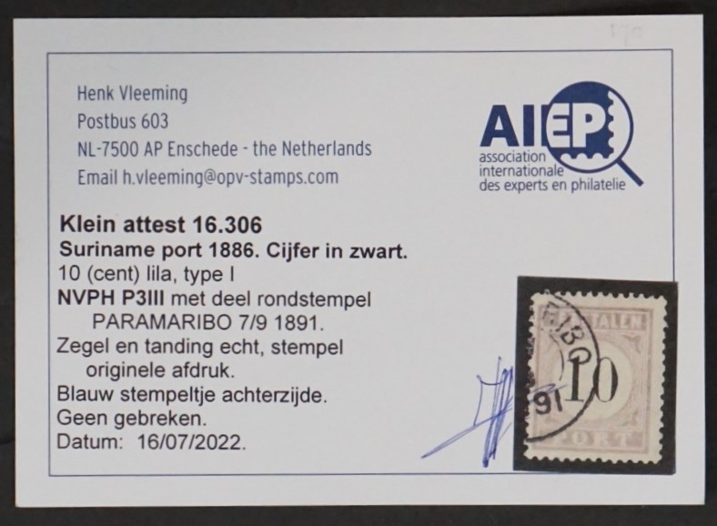 NVPH. P3.1, with certificate.